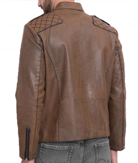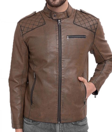 Men’s Diamond Quilted Brown Biker Leather Jacket