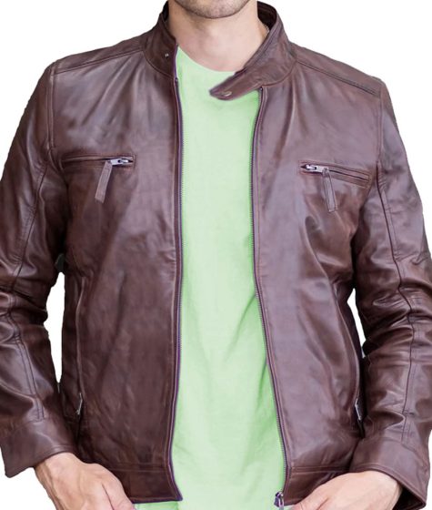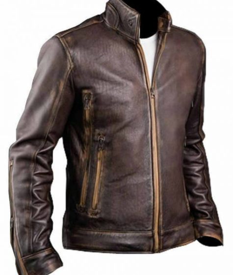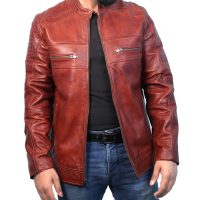 Men’s Cafe Racer Distressed Leather Jacket