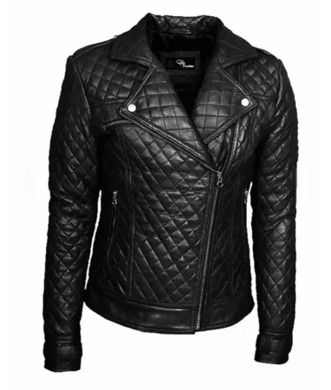 Women’s Slim Fit Diamond Quilted Teal Moto Distress Leather Jacket