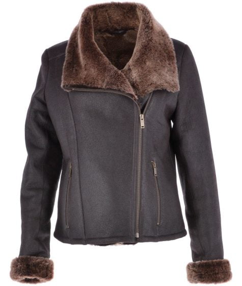 Women’s Double Breasted Tan Brown Shearling Jacket