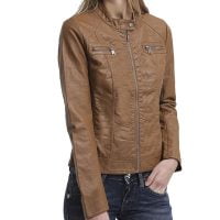 Women’s Brown Slim-Fit Leather Jacket
