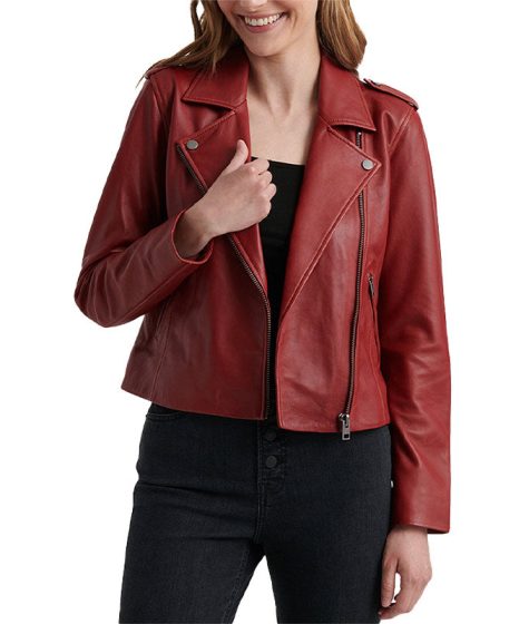 Womens Maroon Moto Style Leather Jacket