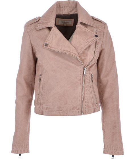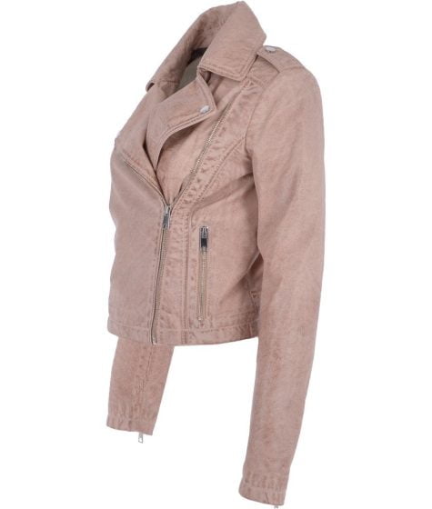 Womens Kelsee Blue Leather Biker Jacket