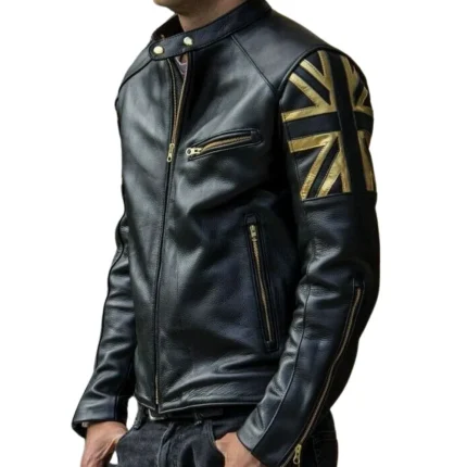 Union Jack UK FLAG Black Motorcycle Leather Jacket