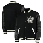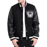 Fashioned to endure through seasons like the enduring spirit of the LA Raiders, the jacket marries comfort with lasting style. Crafted from premium wool for body warmth and paired with leather sleeves for a refined edge, it stands as a piece of durable quality. It boasts the Raiders’ distinctive logo, a shield that’s elaborately stitched against the jacket’s dark backdrop, marking it as a true collector’s item.