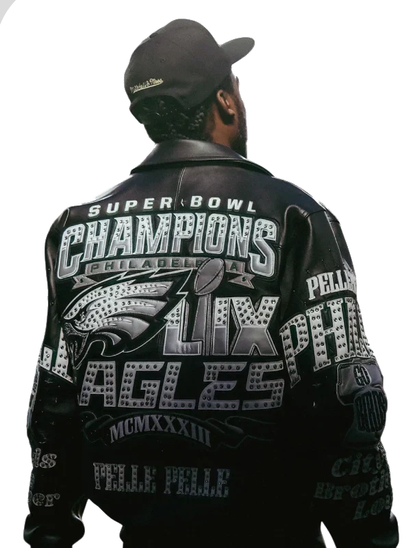 Pelle Pelle Philadelphia Eagles Super Bowl Champions Black Leather Jacket