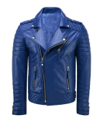 Classic Style Men’s Real Blue Moto Leather Jacket