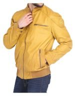Men’s Vintage Style Bomber Quilted Yellow Leather Jacket