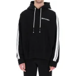 Urban Chic & Sporty Elegance With its sleek silhouette and athletic detailing, this hoodie exudes urban chic with a touch of sporty elegance. The side stripe accents along the sleeves add a dynamic flair, reminiscent of classic track-inspired designs. The Palm Angels logo subtly embroidered on the chest adds a premium touch, reflecting the brand’s commitment to quality and style.
