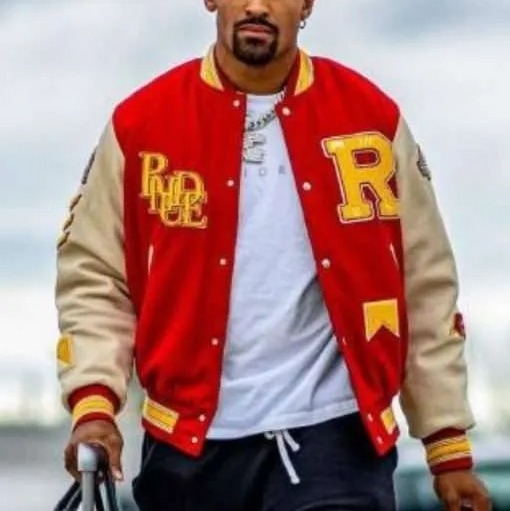 Unisex Rhude Bull Market Jalen Hurts Red Varsity Jacket For Sale