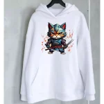Embrace the warrior spirit with the “Samurai Cat Printed Hoodie,” a garment that combines the ferocity of a samurai with the whimsical charm of a feline. This hoodie is not just a piece of clothing; it’s a statement of boldness, merging historical reverence with contemporary fashion. Ideal for those with a passion for unique style, this hoodie promises to be a centerpiece in any casual ensemble.