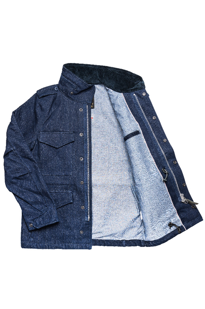 Self Edge Iron Heart M65 16oz Natural Indigo Selvedge Denim M65 Jacket for Sale