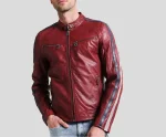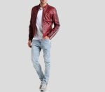 Steven Red Cafe Racer Leather Motorcycle Jacket