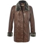 Women Winter Shearling Fur Brown Leather Coat