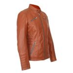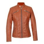 Women’s Stylish Slimfit Quilted Leather Jacket Brown