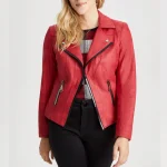 New Women’s Vex Zipper Trim Red Leather Biker Jacket
